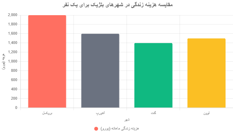 - شهرهای کوچکتر (گنت، لوون) ۲۰-۳۰% ارزانترند.