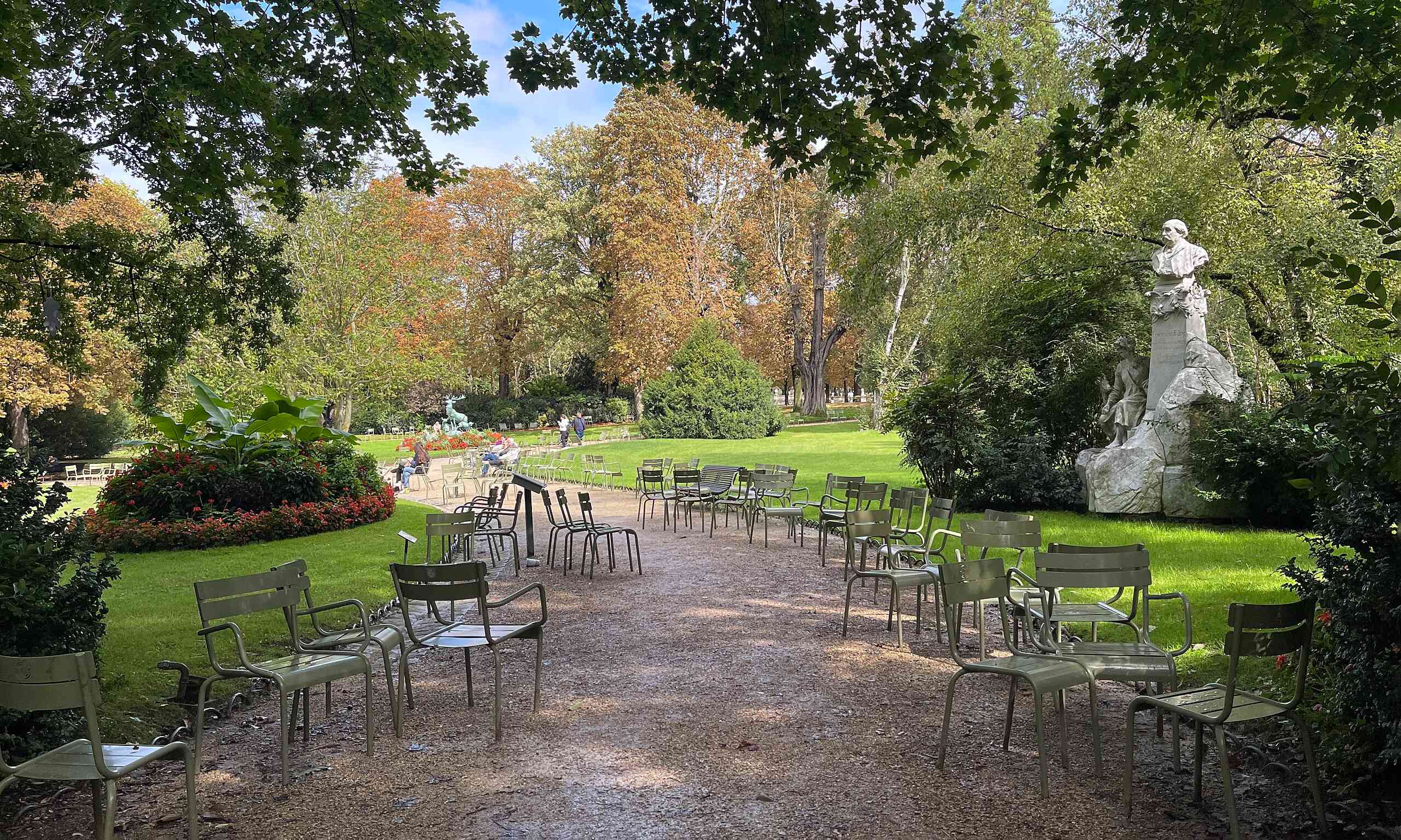 - نیمکتها و صندلیها: بیش از ۲۰۰۰ صندلی فلزی و نیمکت در باغ وجود دارد که میتوانید آزادانه جابهجا کنید.