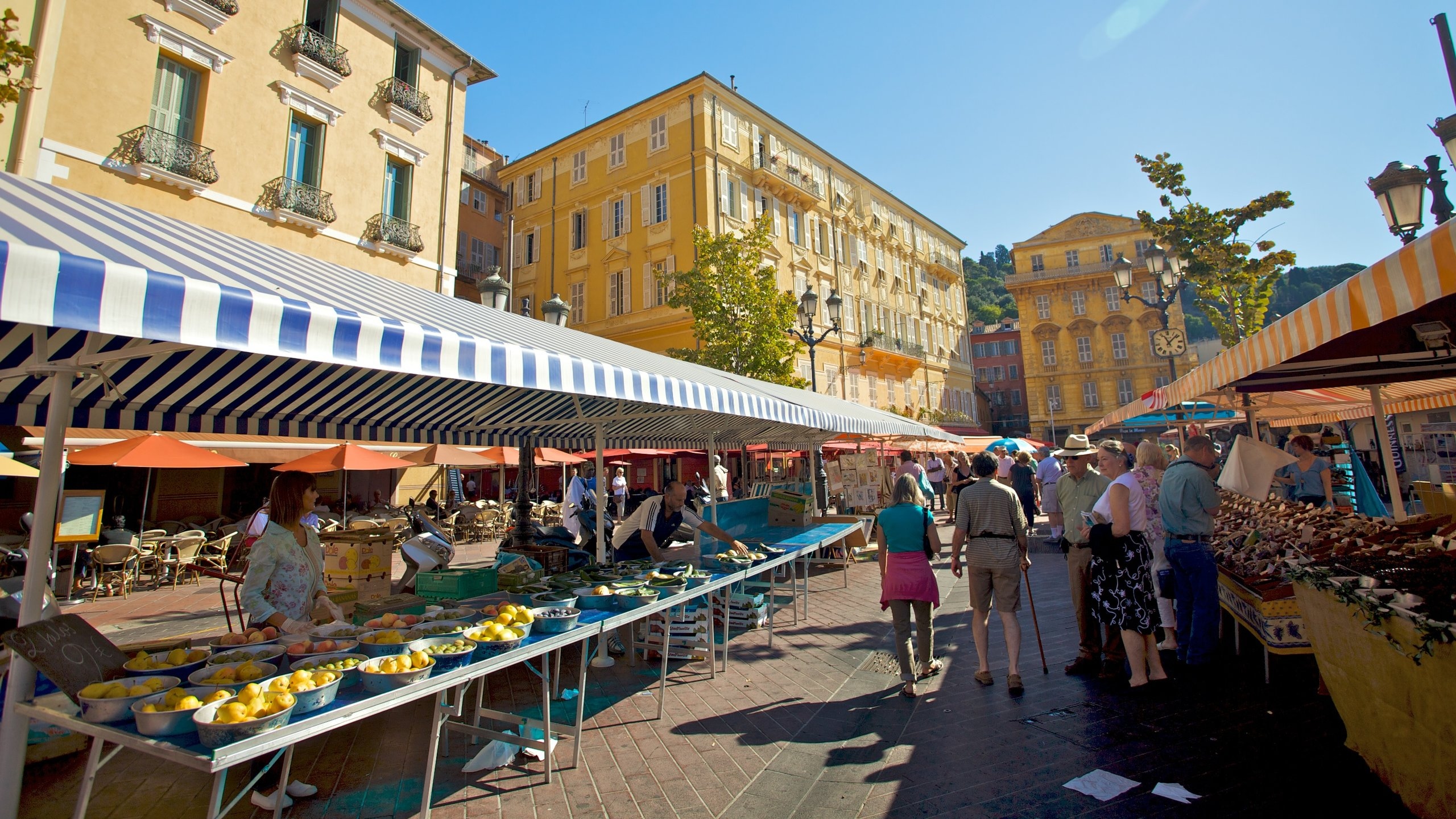 بازار کورس سالیا در قلب منطقه تاریخی الدتاون (Vieux Nice) قرار دارد و یکی از نمادینترین بازارهای نیس است. این بازار از سهشنبه تا یکشنبه، غرفههایی پر از گلهای تازه (بهویژه گلهای لاوندر)، میوهها و سبزیجات محلی، پنیرهای فرانسوی، عسل و صنایع دستی دارد. دوشنبهها، این بازار به بازار عتیقهفروشی و دستدومفروشی تبدیل میشود که برای یافتن جواهرات قدیمی، کتابهای نایاب و اشیای کلکسیونی عالی است.