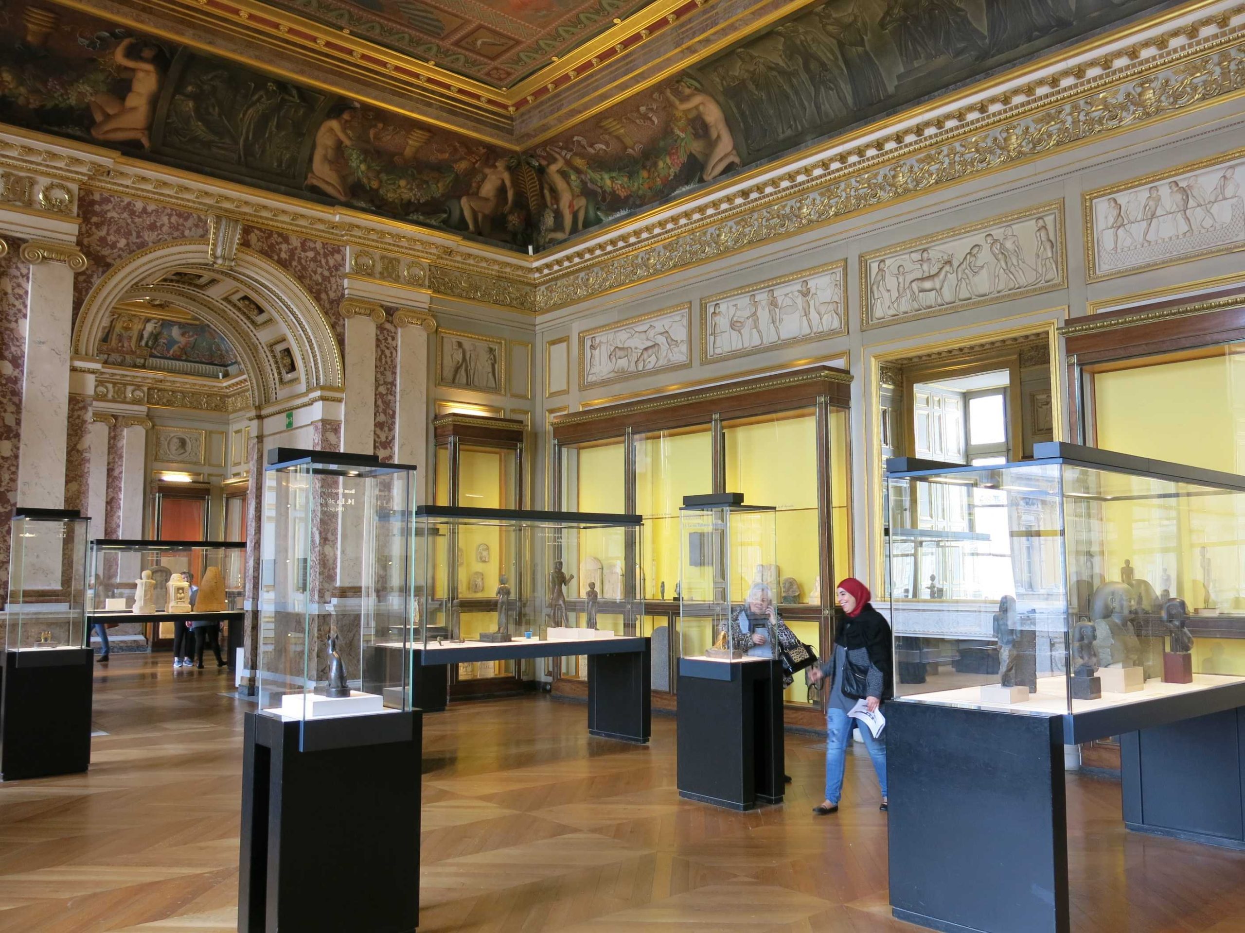 - مجسمه نشسته کاتب (سالن ۶۳۵): مجسمهای از ۲۵۰۰ ق.م با چشمان کریستالی از کوارتز و سنگ سیاه. انگار هنوز مینویسد.