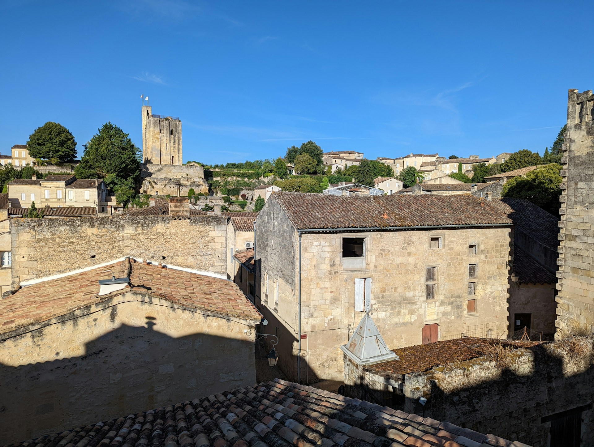 برج ناقوس کلیسای منولیتیک، معروف به «برج پادشاه» (Tour du Roi)، در قرن سیزدهم ساخته شده و بخشی از استحکامات قرونوسطایی بوده است. با بالا رفتن از ۱۲۰ پله این برج، منظرهای پانورامیک از دهکده، تاکستانها و رودخانه دوروگن (Dordogne) خواهید دید. این مکان برای عکاسی در هنگام غروب آفتاب ایدهآل است، زمانی که نور طلایی تاکستانها را درخشان میکند. هزینه ورودی حدود ۲ یورو است و ساعات بازدید معمولاً از ۱۰ صبح تا ۶ عصر است.