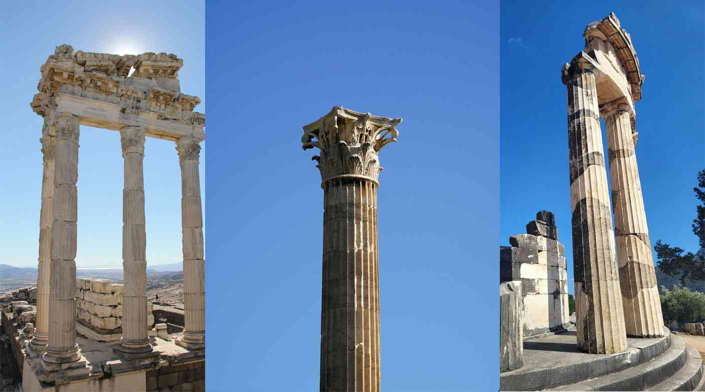 - از ورودی اصلی: عکاسی از ستونها با طاق هادریان در پیشزمینه، بهویژه در غروب.
