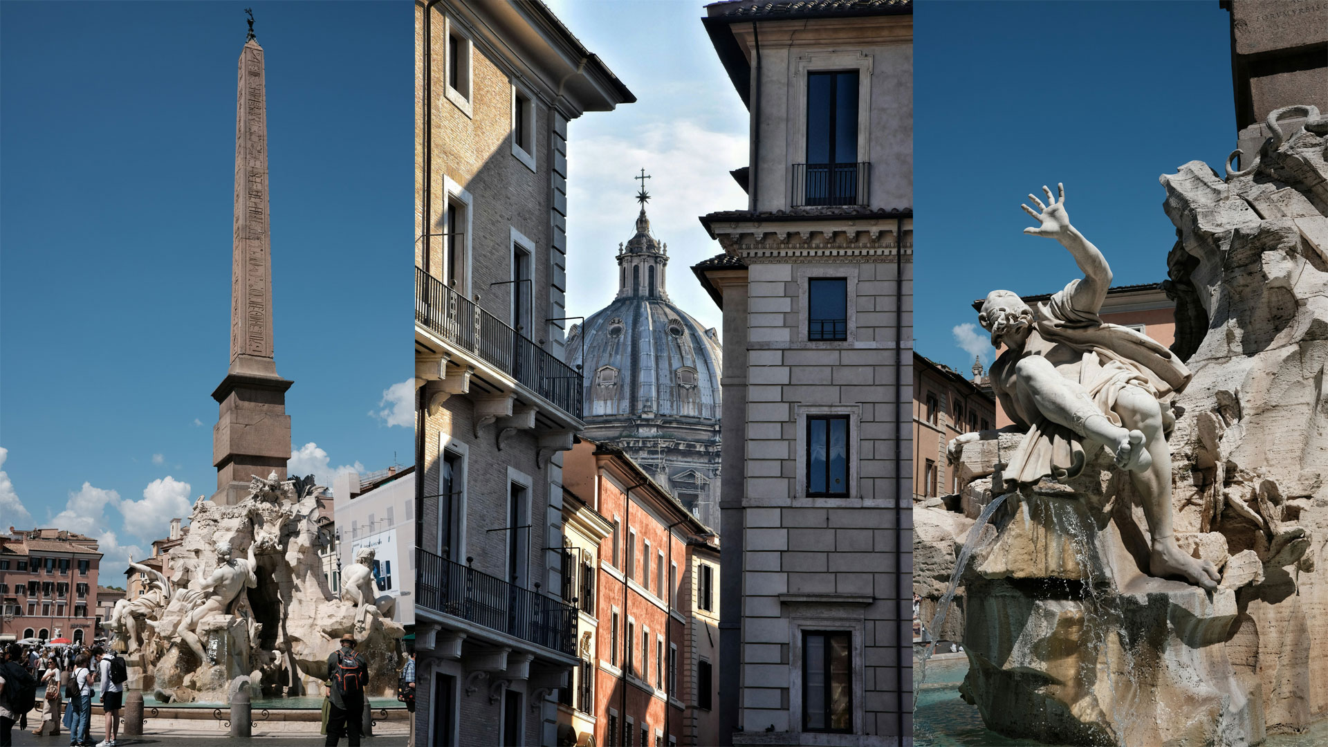 - فوارههای تاریخی: فواره چهار رودخانه اثر جان لورنزو برنینی، همراه با فوارههای نپتون و مور، از شاهکارهای هنری دوره باروک هستند.