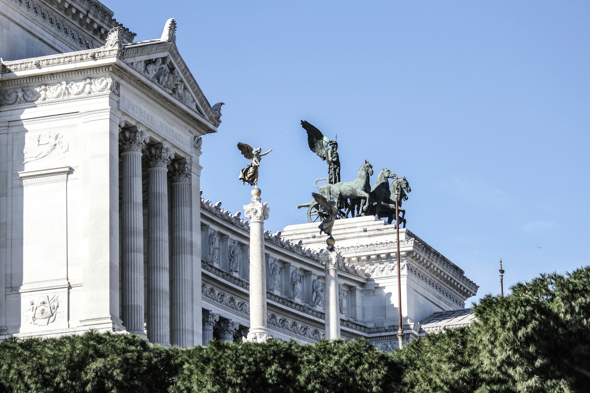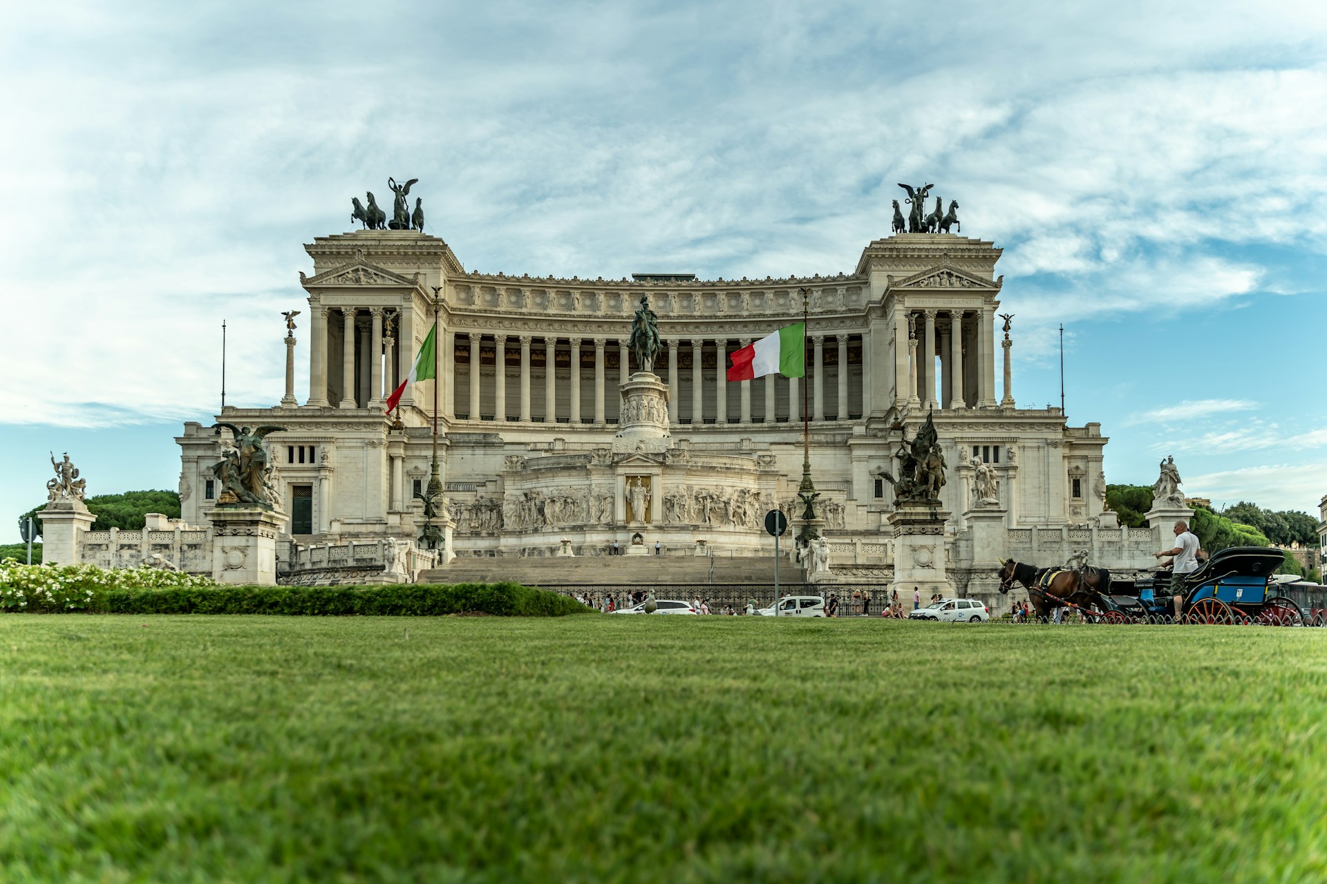 - مجسمه برنزی ویکتور امانوئل دوم: این مجسمه عظیم در مرکز بنا قرار دارد و سوار بر اسب، نمادی از اتحاد ایتالیا است.