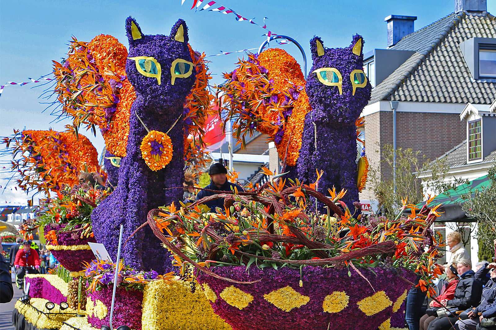 - Bloemencorso: رژهای باشکوه از شناورهای تزئینشده با گلهای لاله، نرگس و سنبل که در مسیری ۴۲ کیلومتری حرکت میکنند. این شناورها با دست طراحی میشوند و گاهی مضامین اجتماعی یا تاریخی را به تصویر میکشند.