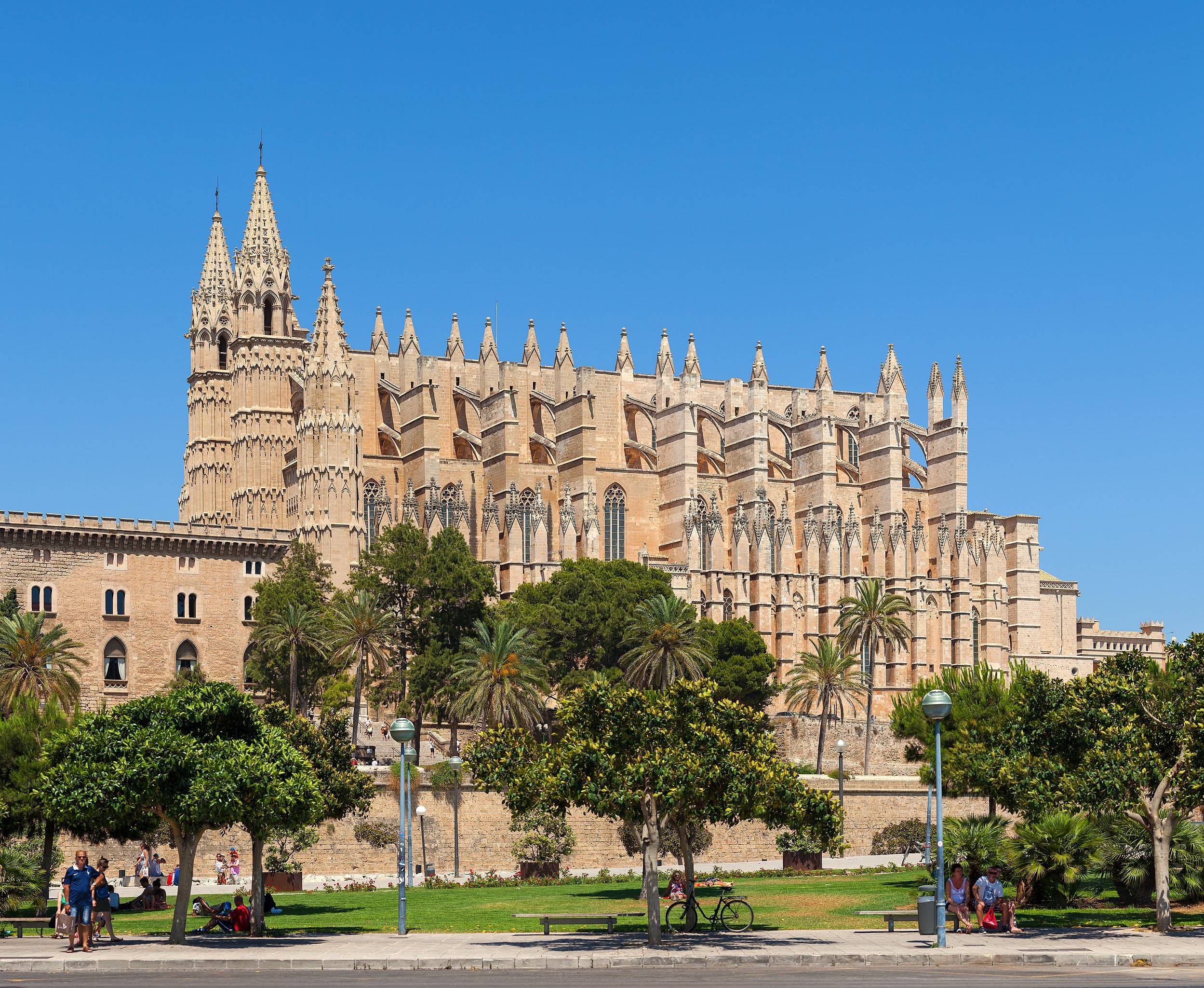 کلیسای جامع پالما، معروف به La Seu، جواهری گوتیک در قلب پالما و مشرف به خلیج است. این بنای عظیم که ساخت آن از قرن سیزدهم آغاز شد و تا قرن هفدهم ادامه یافت، با پنجرههای رنگی عظیم (از جمله پنجره رز با ۱۲۳۶ قطعه شیشه)، ستونهای بلند ۴۴ متری، و تزئینات داخلی طراحیشده توسط آنتونی گائودی، هر بازدیدکنندهای را مبهوت میکند. نمای ماسهسنگی این کلیسا در نور طلایی غروب، منظرهای فراموشنشدنی خلق میکند.