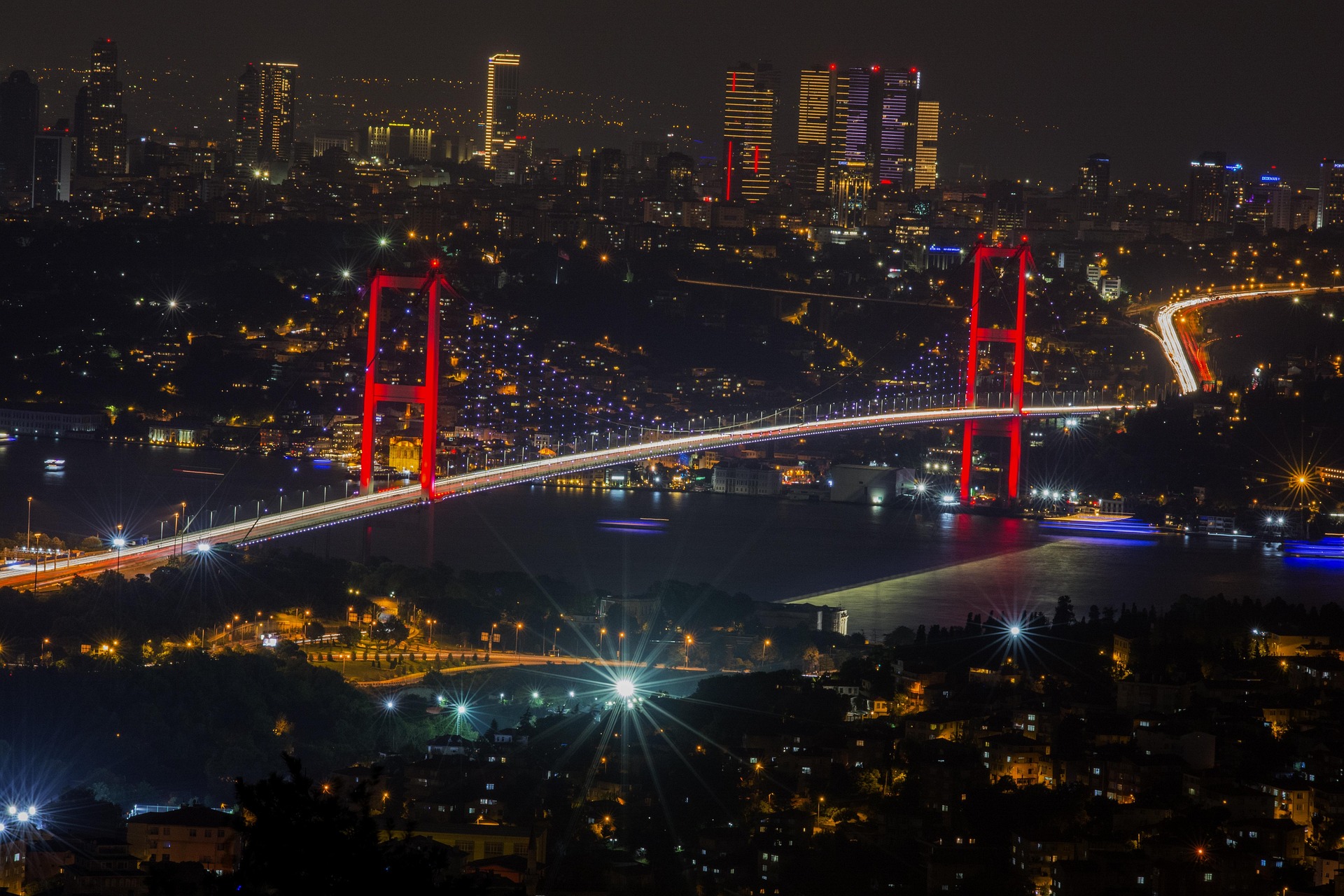 - غروب: نورپردازی پل بسفر و شهر، فضایی رمانتیک ایجاد میکند.